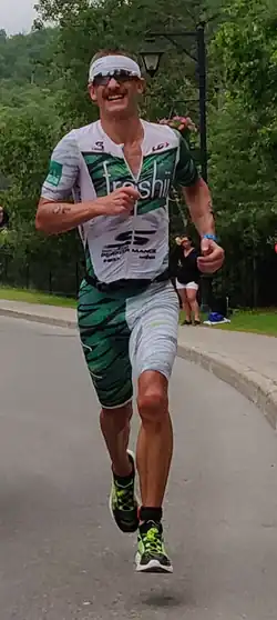 Lionel James Sanders (born February 22, 1988) is a Canadian professional triathlete winner of the 2017 ITU Long Distance Triathlon World Championships. In 2017 and 2021, he also placed second at the Ironman World Championship.[3][4] In 2014 he placed fourth in the 2014 Ironman 70.3 World Championship held in Mont-Tremblant, Quebec.[5] Sanders's first professional race was in September 2013 at the Muskoka Ironman 70.3,[6] where he took 1st place over Andreas Raelert.