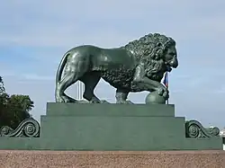The Lions at the Dvortsovaya pier are two lion sculptures in bronze placed at the Admiralty embankment in Saint Petersburg since 1832. The lions are copies of the late 16th century Italian Medici lions in Florence.