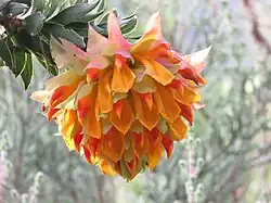 Liparia splendens (locally called orange nodding-head or mountain dahlia; “Skaamblom” (Shy flower) in Afrikaans) is a flowering fynbos shrub of the Fabaceae (legume) family, that occurs in the South-western Cape of South Africa.