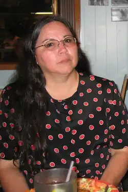 Lisa Telford (born in Ketchikan, Alaska) is a Git'ans Git'anee Haida weaver who creates contemporary garments, shoes and other objects using Northwest Coast style weaving techniques. Her work serves as a commentary on Native identity, stereotypes and fashion.[1]
