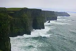 The Cliffs of Moher are one of Ireland's top visitor attractions, and include a protected colony of cliff-nesting seabirds. The area was designated as a Refuge for Fauna in 1988, and as a Special Protection Area for Birds (SPA) under the EU Birds Directive in 1989.[13]