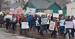| Bethel | 75–100[19] | Participants marched from the Cultural Center to the Bethel Native Corporation,[20] in -25 temperatures and with signs in both English and Yup'ik.[21] | ||