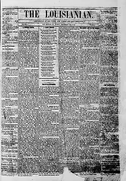The first African American newspaper in Louisiana was L'Union, a French-language newspaper launched in 1862.[1][2] The first daily African American newspaper in Louisiana, and in the entire country, came two years later with La Tribune de la Nouvelle-Orléans.[3][4]