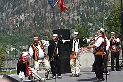 Traditional Albanian clothing, dances, and folklore are showcased in several festivals including the Gjirokastër National Folklore Festival in Gjirokastër;[1] Sofra Dardane every June in Bajram Curri; Oda Dibrane in Peshkopi; Logu I Bjeshkeve every August in Kelmend; Cham Dance Festival in Saranda; and other festivals in various Albanian cities.