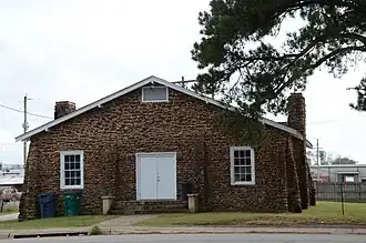 NRHP-listed[1] Single-story, T-shaped cypress log building with truss roof[2]