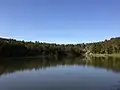 Forested area surrounding large lake known for bass fishing, bird watching, hiking and camping. |