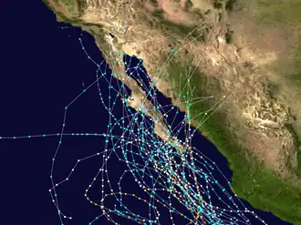 - ^ "Monthly Weather Review: Eastern North Pacific Hurricane Season of 1989" (PDF). 1990. Retrieved May 27, 2009.