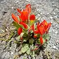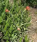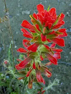 This is a list of the species in the genus Castilleja. They are commonly called paintbrushes,[1] painted-cups, or owl’s-clovers in English.[2] These 218 species and two natural hybrids are considered valid by Plants of the World Online (POWO) as of 2024.[3] This list largely agrees with World Flora Online (WFO) with some exceptions. WFO lists Castilleja eggeri as unchecked.[4] It also spells some species names differently, Castilleja rhexiifolia with a single "i" instead of a double "ii", Castilleja tolucensis as Castilleja toluccensis, and Castilleja virgatoides as Castilleja virgayoides.[5][3] In addition one of the two hybrids, Castilleja × cognata, is listed in WFO as a species rather than as a hybrid.[6]