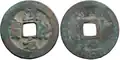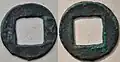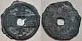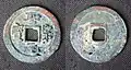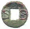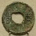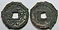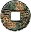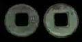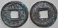 The rebel Gongsun Shu cast iron cash coins based on the Wu Zhu's of the Western Han dynasty in his rebel state of Chengjia in present-day Sichuan:[18]