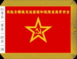 | 1927–1928 | Flag of the Chinese Workers' and Peasants' Red Army[5] | Same as the 1928 version, but the left side reads "工農革命軍" (China Workers'/Peasants' Revolutionary Army). Divisions were added, for example "第二軍第一師" (Second Army, 1st Division). | |