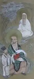 C17 Daisen private by Kanō Tan'yū; thought, alongside his Child Monju at Kanman-ji in Nikaho, to have been part of a group of three paintings - the whereabouts of the central image of Shaka Nyorai is currently unknown[14] 120 centimetres (3 ft 11 in) by 75 centimetres (2 ft 6 in) 39°28′02″N 140°28′14″E / 39.467110°N 140.470505°E / 39.467110; 140.470505 (Wakatake-chō, Daisen)