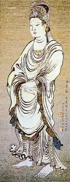 | Shaka Coming Forth from the Mountains and Kannon Bosatsu, colour on paper 紙本著色出山釈迦図及び観世音菩薩図 shihon chakushoku shussan Shaka zu oyobi Kannon Bosatsu zu |