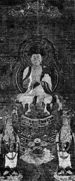 | Zen Master Zengen Taisai, colour on silk 絹本著色禅源大済禅師像 kenpon chakushoku Zengen Taisai zenshi zō |
