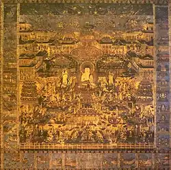 | Taima Mandala, colour on silk 絹本著色当麻曼荼羅図 kenpon chakushoku Taima mandara zu |