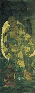 Kamakura period Nagano Seisui-ji (清水寺) pair of scrolls 103.9 centimetres (40.9 in) by 86.1 centimetres (33.9 in) 36°32′39″N 138°12′04″E / 36.544071°N 138.201180°E / 36.544071; 138.201180 (Seisuiji) [6]