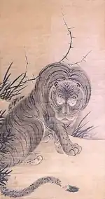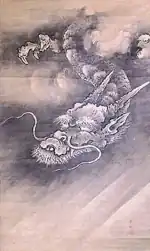 Kannon flanked by a Dragon and a Tiger, ink on paper, by Kanō Kōi