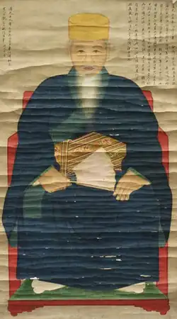 | Portrait of Miyahira Chōen, colour on paper 紙本着色宮平長延画像 shihon chakushoku Miyahira Chōen gazō |