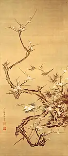 the reputation of Yamaguchi Sōki (1672-1743) was such that he received commissions for paintings of flowers and birds from the Shimazu clan in Satsuma and Konoe family in Kyoto[15] | ![]() |