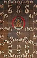 | *Divinely inspired Reception of the Two Great Sutras, colour on silk 絹本著色両部大経感得図 kenpon chakushoku ryōbudai kyōkan toku zu |