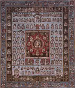 | Mandala of the Two Realms, colour on silk 絹本著色両界曼荼羅図 kenpon chakushoku ryōkai mandara zu |