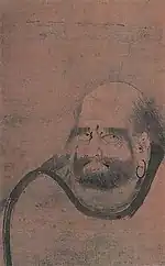 | Daruma, ink on paper, by Kaihō Yūshō 紙本墨画面壁達磨図 海北友松筆 shihon bokuga menpeki Daruma-zu Kaihō Yūshō hitsu |