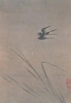 | Swallow in flight, ink on paper, by Kō Saidō 紙本墨画飛燕図 康西堂筆 shihon bokuga hien zu Kō Saidō hitsu |
