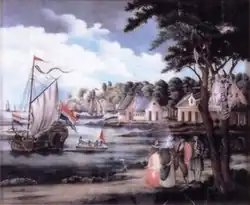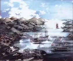 Occidental Landscape and Nagasaki Harbour, glass painting