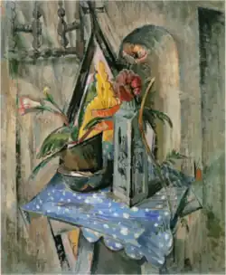 | Still Life with Calpis Wrapping Paper, oil on canvas, by Nakamura Tsune カルピスの包み紙のある静物 中村彝筆 油絵麻布 1923年 1面 Karupisu no tsutsumigami no aru seibutsu Nakamura Tsune hitsu abura-e asanuno |