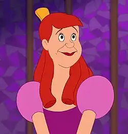 Anastasia Tremaine (voiced by Lucille Bliss) is the younger daughter of Lady Tremaine.[5] Though following the original story's depiction of the ugly and cruel stepsister in the first film, Anastasia undergoes a redemption arc in the sequels as she struggles to find genuine love and follow her conscience despite her mother and sister's negative influence. Pat Williams, James Denney, and Jim Denney reported that actress "Lucille Bliss was the voice of Cinderella's stepsister, Anastasia, an experience that remains one of her fondest memories." Bliss that "I was just a teenager when I got the part...I read that Walt had personally selected me for the part of Anastasia."[5]