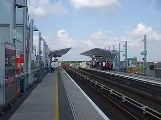 - ^ a b c d BBC News (6 December 2005). "DLR extension to airport is open". BBC News. Retrieved 28 June 2011.