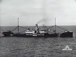 Empire Hamble was a 3,260 GRT cargo ship, U.S. Shipping Board Emergency Fleet Corporation Design 1023, built by Submarine Boat Corp, Newark, New Jersey after the USSB contract was terminated for Transmarine, formed for the purpose of completing planned hulls, under the names Nebelow / Sulanierco, launched 23 August 1920 as Sulanierco, sold in 1931 to Portland California Steamship Co, Seattle renamed Admiral Senn for operation with the Admiral Line.[8][9][10] Sold in 1940 to Thai Niyom Panich Co Ltd, Bangkok and renamed Threpsatri Nawa. Seized by UK in 1941 as a war prize. To MoWT and renamed Empire Hamble. Operated by the United States Army 15 October 1942 – March 1946 as part of the South West Pacific Area Command's permanent local fleet, assigned the "X" number 37, under allocation by MoWT.[11][12] Empire Hamble was a sister ship to the Coast Farmer, sunk 21 July 1942, and Admiral Halstead that were both in the Pensacola Convoy that was headed to the Philippines and diverted to Australia on 7 December 1941. All were among the original SWPA ships.[9][13][14] Sold in 1947 to Bulk Storage Co Ltd, which became Basinghall Shipping Co. Scrapped in February 1950 in Bombay, India.[15]
