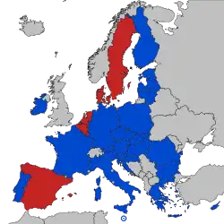 At present, there are twelve monarchies in Europe, of which six are members of the European Union: Belgium, Denmark, Luxembourg, the Netherlands, Spain and Sweden, and six are not: Andorra, Liechtenstein, Monaco, Norway, the United Kingdom and the Vatican City. All six monarchies in the European Union are constitutional monarchies. In all six monarchies that are in the EU, the monarch is legally not vested with political power, or the monarch does not utilise the political powers vested in the office by convention. At the dawn of the 20th century, France was the only republic among the future members states of the European Union; the ascent of republicanism to the political mainstream only started at the beginning of the 20th century. In Belgium, the monarchy enjoys a lower degree of support than in other European monarchies, and is often questioned.[9] Popular support for the monarchy has historically been higher in Flanders and lower in Wallonia; however, in recent decades these roles have reversed.[10]