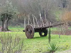- cheda[2] [f] 'lateral external board of a cart, where the crossbars are affixed', from Medieval Latin cleta, from proto-Celtic *klētā,[4][5][49] cognate of Irish cloí (cloidhe) 'fence', clíath 'palisade, hurdle', Welsh clwyd 'barrier, wattle, scaffolding, gate', Cornish kloos 'fence', Breton kloued 'barrier, fence'; cognate of French claie 'rack, wattle fencing', Occitan cleda, Catalan cleda 'livestock pen', Basque gereta.