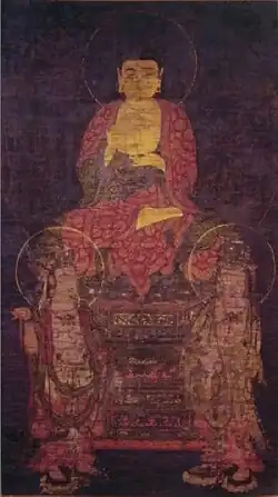 | Amitabha, colour on silk 絹本著色阿弥陀如来坐像 kenpon chakushoku Amida Nyorai zazō |