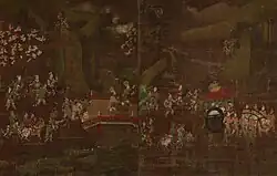 1069 | 10 panels; by Hata no Chitei (秦致真) from Settsu Province; from the Tō-in picture hall or Eden (絵殿); shōji remounted as byōbu in the Edo period, and recently remounted again; there is an associated record of conservation work in 1788 | ![]() |