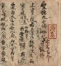 | ICP | Private Recollections of the Life of Shōtoku Taishi, by Kenshin 聖徳太子伝私記(古今目録抄)〈顕真筆/〉 Shōtoku Taishi-den shiki (kokon mokurokushō Kenshin hitsu) |