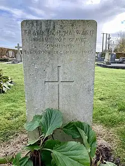 | Frank A. H. Hayward | 20 December 1936 | Cimetière Communal Courcelette | Former gardener of the Courcelette area cemeteries, who served with the Royal Sussex Regiment in WW1. He joined the IWGC in 1919, first as a gardener in the Godewaersvelde area. In 1935 he moved to Courcelette as a Gardener Labourer until his death in 1936.[7] | ![]() |