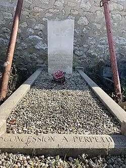 | Reginald George Covey | 9 June 1975 | Joined the IWGC in 1921 as a Gardener's Labourer. Promoted to Gardener-Caretaker in 1937. Died age 75. Also buried with his wife, Marie Thomas, who died in 1991. Reginald had previously served with the Royal West Kent Regiment during World War One.[17] | ![]() | |
