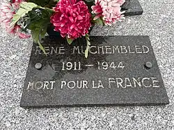 | René Muchembled | July 1944 | Cimetière Communal Mailly-Maillet | One of the IWGC's French workers, gardener in the Beaumont-Hamel area. During WW2 he helped fellow gardener Ben Leech to hide evading airmen. In July 1944 he was shot by the Germans in his own home after they discovered he had been hiding weapons. He does not have an IWGC headstone.[10] |