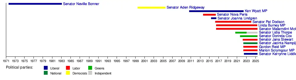 - ^ Richards, Lisa (15 June 2021). "Indigenous Australian parliamentarians in federal and state/territory parliaments: a quick guide". Parliament of Australia. Archived from the original on 25 November 2021. Retrieved 25 November 2021.