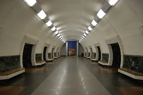 | Palats Ukraina[p] | Палац «Україна» | 30 December 1984 | Underground | 32 m (105 ft) | ![]() |