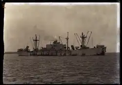 Basilan was built by Delta Shipbuilding Company. Her keel was laid on 5 February 1944. She was launched as Jacques Philippe Villere on 21 March.[5] Completed at the Waterman Steamship Corporation's yard at Mobile as Basilan for the United States Navy.[14] Delivered on 21 April.[5] A repair and supply ship, she was laid up in Suisun Bay in 1947.[4] She was sold to a shipbreaker in Portland, Oregon in June 1972.[14]