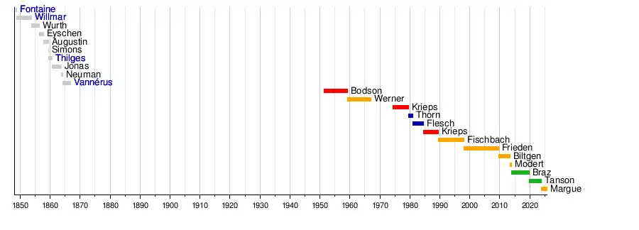François-Xavier Wurth | None | 23 September 1853 | 24 May 1856 | Charles-Mathias Simons | |