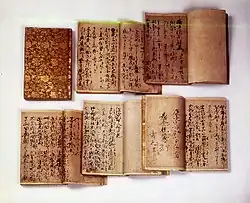The term "National Treasure" has been used in Japan to denote cultural properties since 1897,[1][2] although the definition and the criteria have changed since the introduction of the term. The written materials in the list adhere to the current definition, and have been designated National Treasures according to the Law for the Protection of Cultural Properties that came into effect on June 9, 1951. The items are selected by the Ministry of Education, Culture, Sports, Science and Technology based on their "especially high historical or artistic value".[3][4] The list presents 107 entries from the Western Wei dynasty to the Meiji period with most dating to the period of Classical Japan and Mid-Imperial China from the 7th to 14th century. The total number of items is higher, however, since groups of related objects have been joined as single entries.