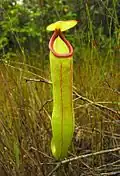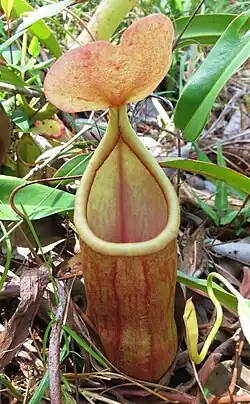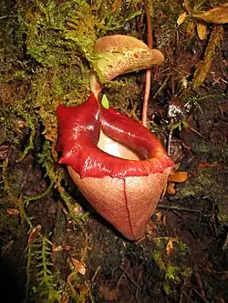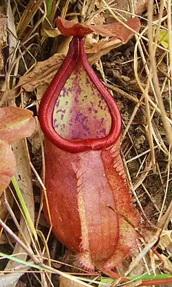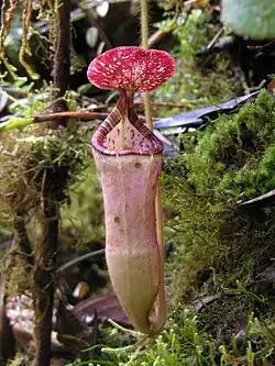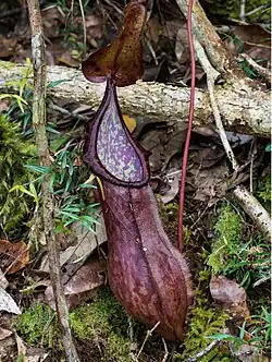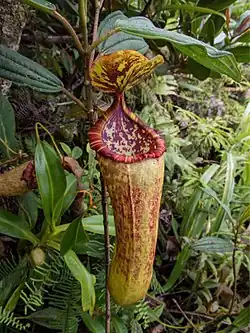 The official IUCN conservation status of each species is taken from the latest edition of the IUCN Red List.[1] Unofficial assessments based on the IUCN criteria are also included, but are presented in italics. Unless otherwise noted, taxonomic determinations and all other information are sourced from Stewart McPherson's two-volume Pitcher Plants of the Old World, published in 2009.[2] Where recent literature provides an altitudinal distribution that falls outside the range given in Pitcher Plants of the Old World, the discrepancy is noted.