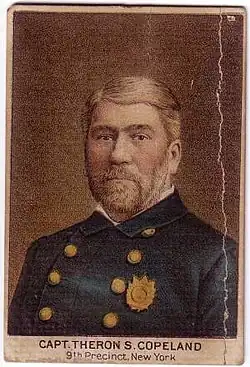 Sergeant | 1828–1897 | 1860–1897 | Officer in command of a police detachment with fellow Sergeant S.B. Smith. Their later arrival eventually resulted in the defeat of rioters at Third Avenue and Forty-Fourth Street. | [1][2][10] |