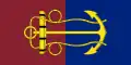 Blue canton with cornucopia in top-hoist. Red canton with pick and shovel in top-fly. White lower half with ship and blue horizontal. |