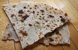- Lefse – a traditional soft Norwegian flatbread. It is made with flour, can include riced potatoes, and includes butter, and milk, cream, or lard. It is cooked on a large, flat griddle.[11]