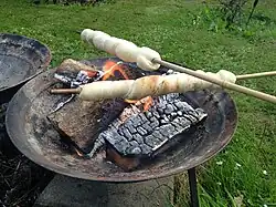 - Pinnebrød – a type of bread in which the dough has been rolled into a long sausage shape, twisted over the end of a stick, and baked over an open fire.[20]