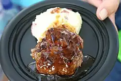 - Kjøttbolle – smaller rounder meatballs, often served with brun saus, mashed potatoes and lingonberry jam.[48]